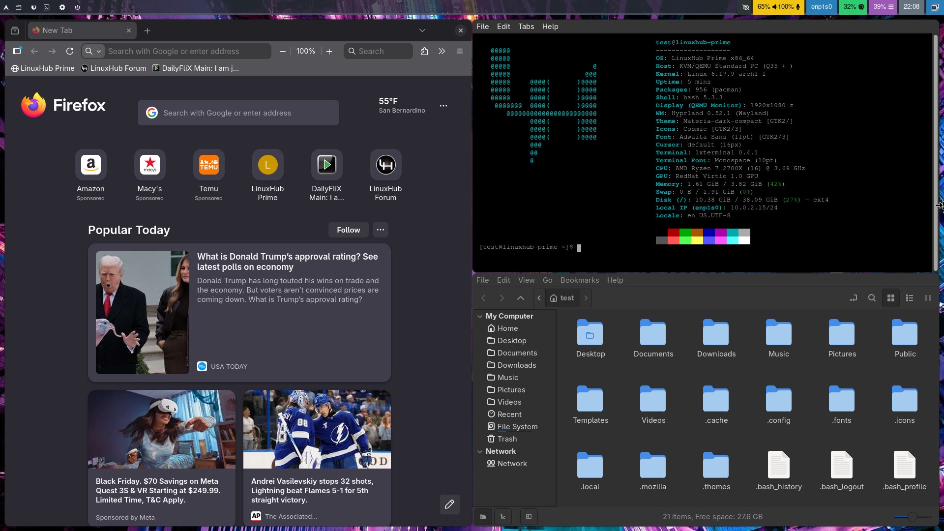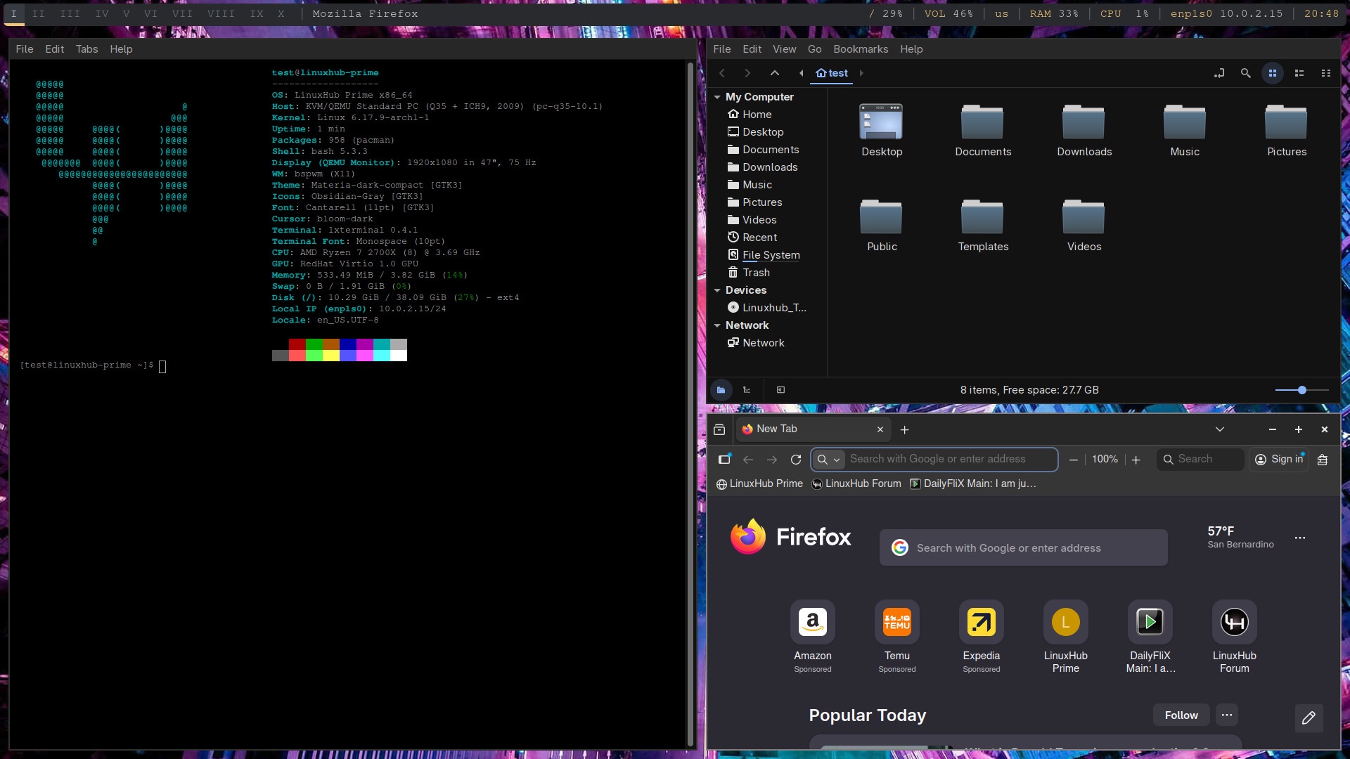 Hyprland is a tiling window manager that uses the Wayland compositor