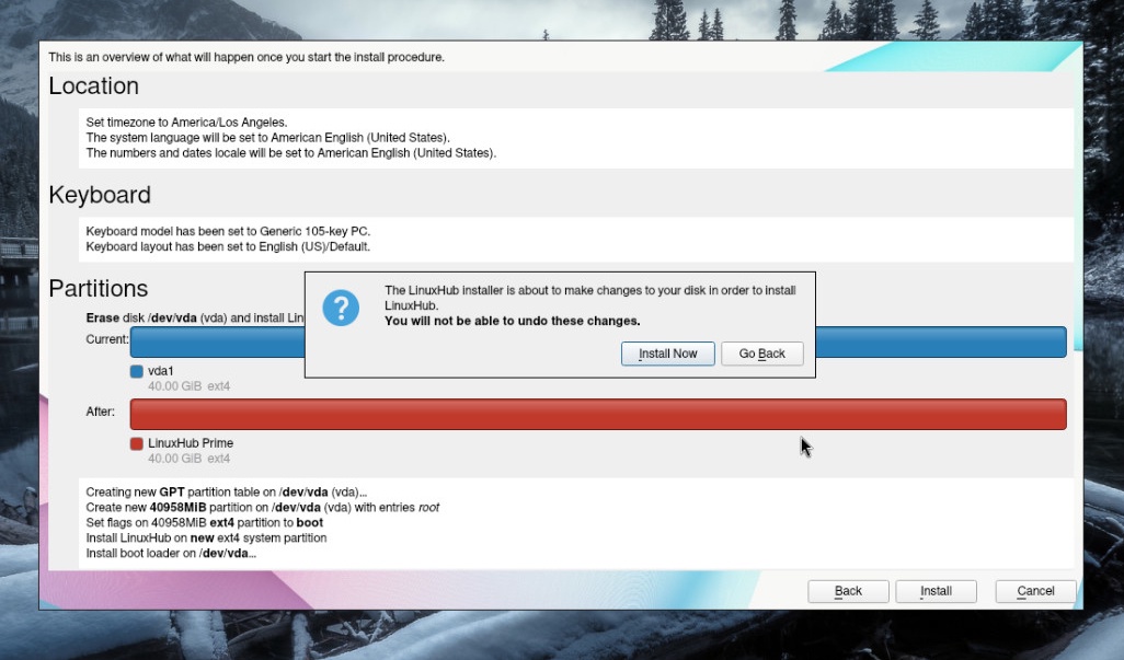 step 5: Begin Installation. Navigate back to first screen. Highlight "Install" then press enter on your keyboard.