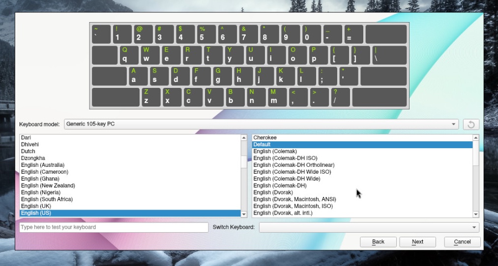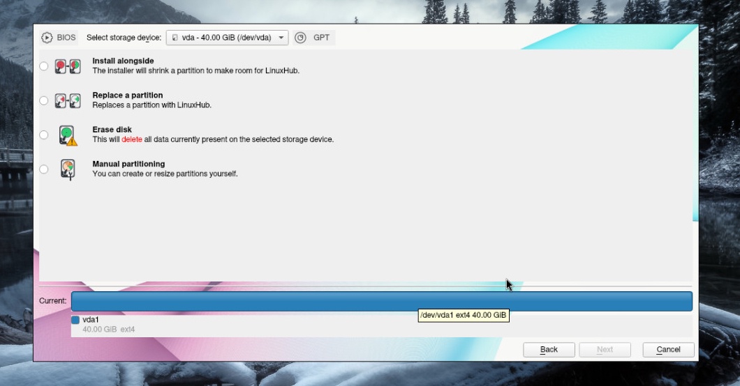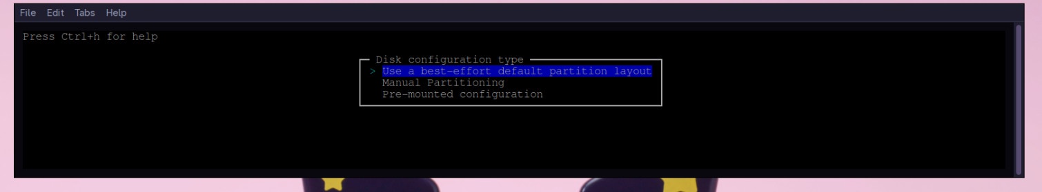 step 2: Select the Default partition layout. first option. This is the easiest option.